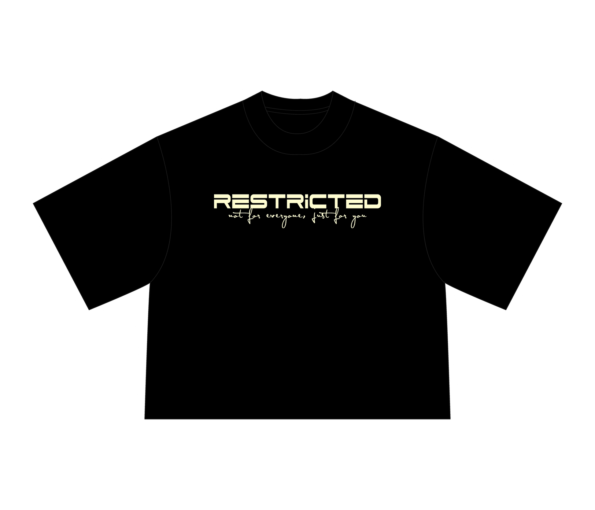 Features the bold RESTRICTED logo with script detail, delivering a clean street-luxury aesthetic.